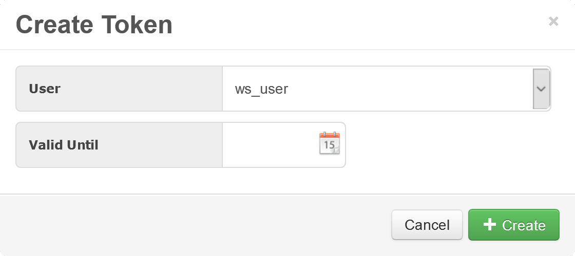 Click the Create button to the right of the Token option.- Select the User created in the previous step.